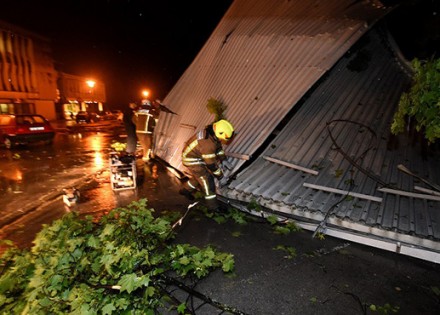 Krov bolnice koji je vjetar skinuo oštetio je tri automobila u blizini zgrade bolnice u Karlovcu, a u jednom od naselja stablo je palo na električne vodove i oštetilo ih.