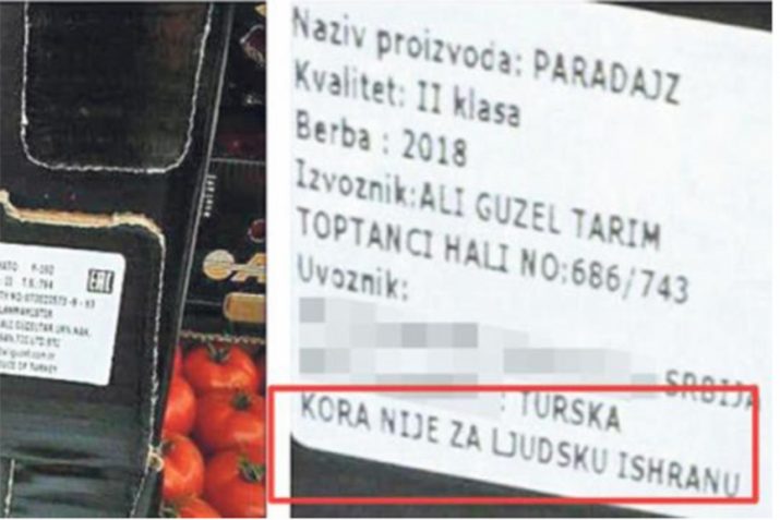 Na gajbicama paradajza uvezenog iz Turske ispisano stravično upozorenje da kora nije za ljudsku ishranu, ali je on ipak stavljen u promet na beogradskim tezgama.