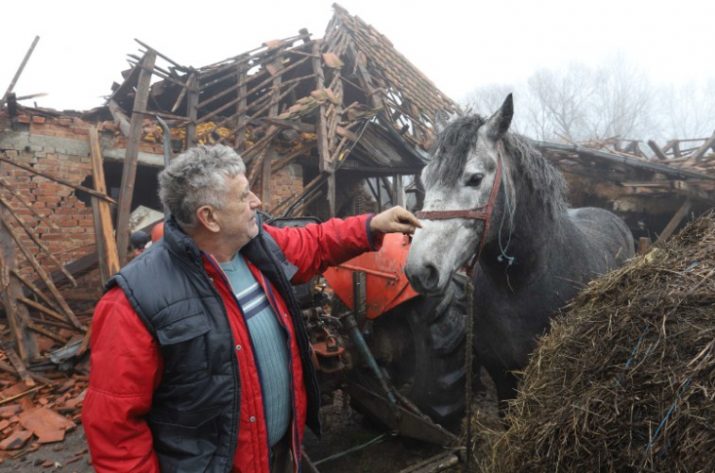 Prizor je to koji slama srce – Tomo Suknaić je iz srušenog imanja u Majskim Poljanama uspio spasiti mačku, psa i svog voljenog, najvoljenijeg konja.