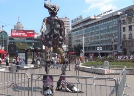 Na centralnom Trgu Republike u Beogradu postavljene su metalne skulpture ogromnih robota inspirisane junacima filma “Transformersi”.