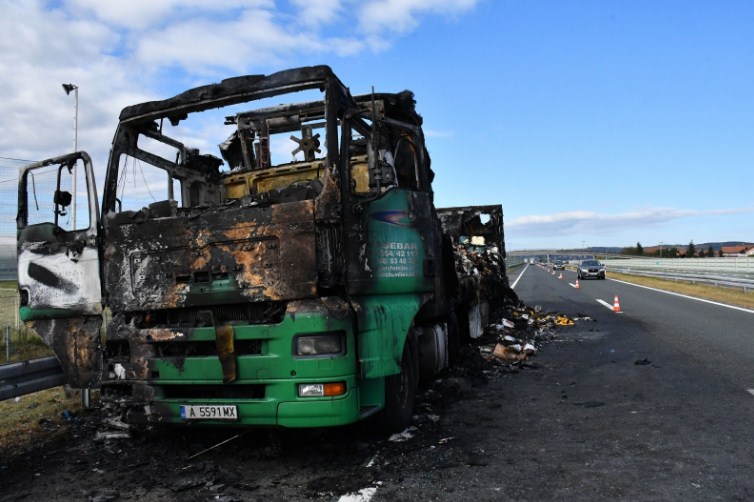 Kamion je zbog intenziteta požara u potpunosti izgorio, a intervenisali su vatrogasci.