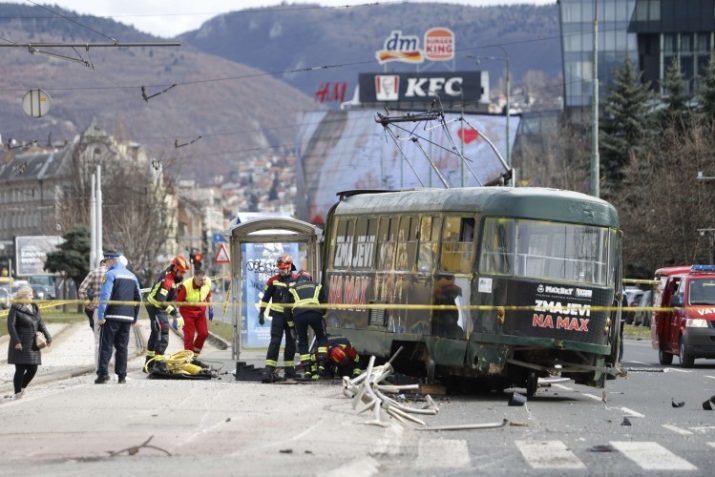 Teška nesreća desila se juče u sarajevskoj ulici Zmaja od Bosne, u blizini Zemaljskog muzeja, kada je iskočio tramvaj iz šina. Od siline udara gotovo potpuno je uništena tramvajska stanica.