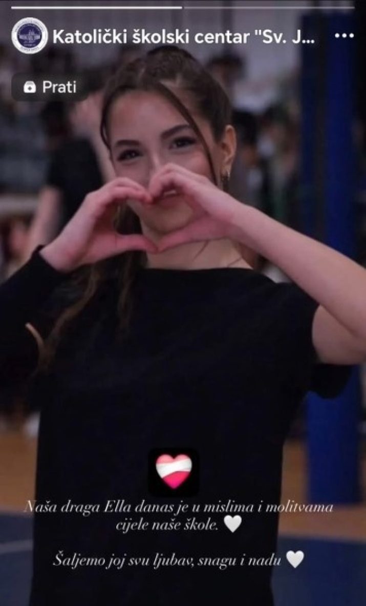 „Naša draga Ella danas je u mislima i molitvama cijele naše škole. Šaljemo joj svu ljubav, snagu i nadu“, napisano je u jednoj od objava Katoličkog školskog centra „Sveti Josip“ u Sarajevu.