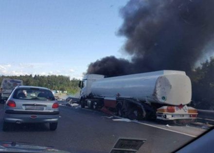 U nesreći, koja se dogodila u ponedjeljak, učestvovao je kamion i cisterna, prenosi slovenački portal “24ur.com”. Cisterna se, prema pisanju slovenačkih medija, zaustavila zbog probušene gume, a u nju se zaletio kamion koji je prevozio sladoled.