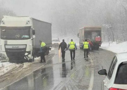 Snijeg od jutros pravi nove probleme u saobraćaju. Dogodilo se više saobraćajnih nesreća, a vožnja preko planinskih prevoja je otežana, pogotovo kamionima, koji povremeno ostaju zaglavljeni na cesti.