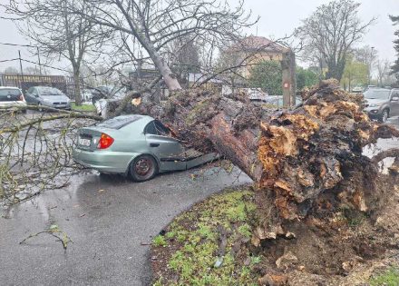 Vjetar je napravio velike probleme u Zagrebu, a iščupao je i jedno stablo koje je palo na parkirani automobil i potpuno ga uništilo.