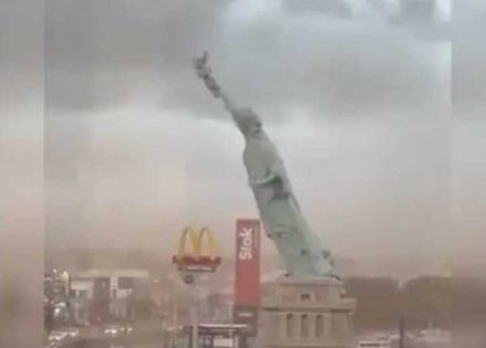 WATCH: Replica of the Statue of Liberty topples due to strong winds in Guaíba, Brazil pic.twitter.com/pMxN7KLu5y