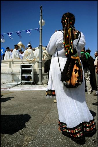 A nešto prije podneva, svi zajedno, lokalno stanovništvo i mnogi posjetioci izađu u glavnu ulicu, gdje prate svetu ikonu od crkve pa sve do luke uz opšte veselje i svečanu muziku mornaričkih duvačkih orkestara. Biti dio tog događaja zaista pričinjava zadovoljstvo, jer smo dobili priliku da vidimo kako slavlje priređuju i doživljavaju Grci, ali i to kako mu doprinos, svojim neobično veselim tonom, daju gosti i naročito gošće iz Etiopije.