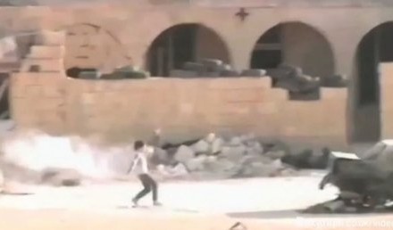 Klip koji traje minut postavio je na internet “Šaam njuz netvork čenel” i na njemu je prikazan dječak od oko osam godina koji ustaje nakon što je pogođen i trči da spasi djevojčicu koja se krila iz spaljenog kamioneta postavljenog nasred puta.