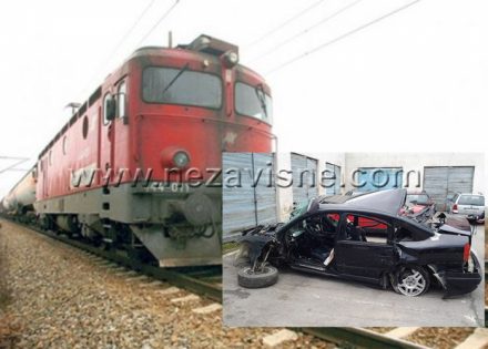Od siline udara voz je automobil gurao još nekih 100 metara dalje po pruzi.