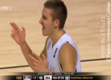 Bek reprezentacije Srbije je u 33. minutu četvrtfinalnog duela sa Brazilom, kod vođstva srpskog tima 72:46, pogodio trojku sa više od 10 metara.