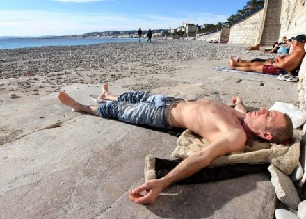 Dok širom Evrope pada snijeg i vlada izrazito hladno vrijeme, u francuskoj Nici nije takva situacija. Naime, vrijeme je pogodno za sunčanje, što su mještani i iskoristili.