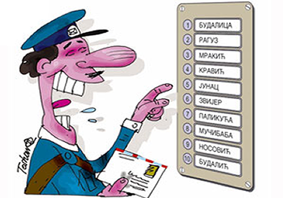 Pomenuti humorista je predlagao da za direktora pilane u njegovom kraju treba postaviti Bukvića, a za šumara Drvendžiju. Po njemu, upravom puteva bi trebao da diriguje Okuka, a mjesto prvog čovjeka lokalnog vodovoda zaslužuje Suša. I zdravstvo je pokriveno. Glavni hirurg je Parović, a asistira mu Buconjić. Specijalisti za uvo, grlo i nos su Nosović, Šmrkić, Gluvović i Bjelogrlić, internista je Grčić, a očni ljekari Škiljević i Ćorić. Ortoped je Kostić, a glavni ginekolozi Kuljić i Babić.
