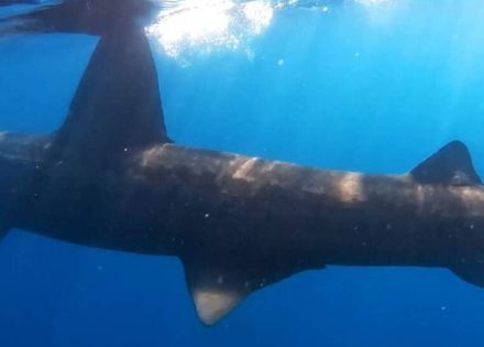 Na svega tridesetak metara od sebe, ispred Muzila, ugledao je morsku psinu, odnosno golemu ajkulu (Cetorhinus maximus), drugu najveću ribu na svijetu.