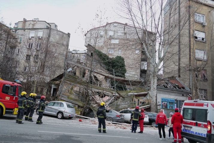 U Ulici Džordža Vašingtona u centru Beogradu srušio se dio napuštene kuće i dio građevinske skele koja je bila naslonjena na kuću.