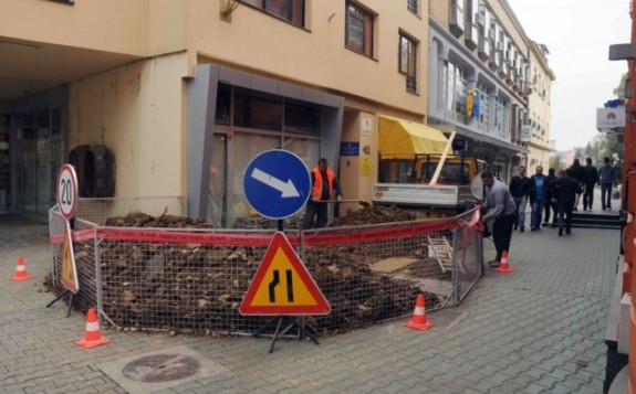 Radnici preduzeća “Miloš-impeks” danas su u Gospodskoj ulici otčepljavali kanalizaciju jednog od poslovnih prostora u centru grada.