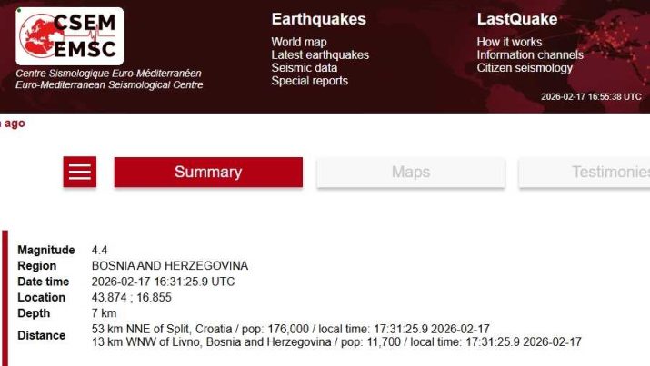 Kako navode podaci EMSC, zemljotres je zabilježen 13 kilometara od Livna, a osjetio se i na području Hrvatske.