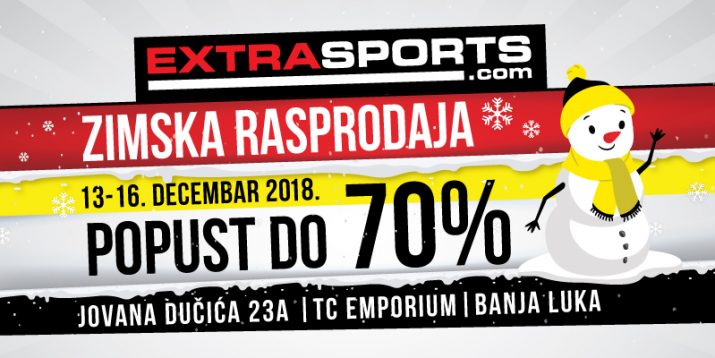 Od 13.12. do 16.12. Extra Sports je mjesto odličnog šopinga uz fantastične popuste do čak 70% na sav asortiman.