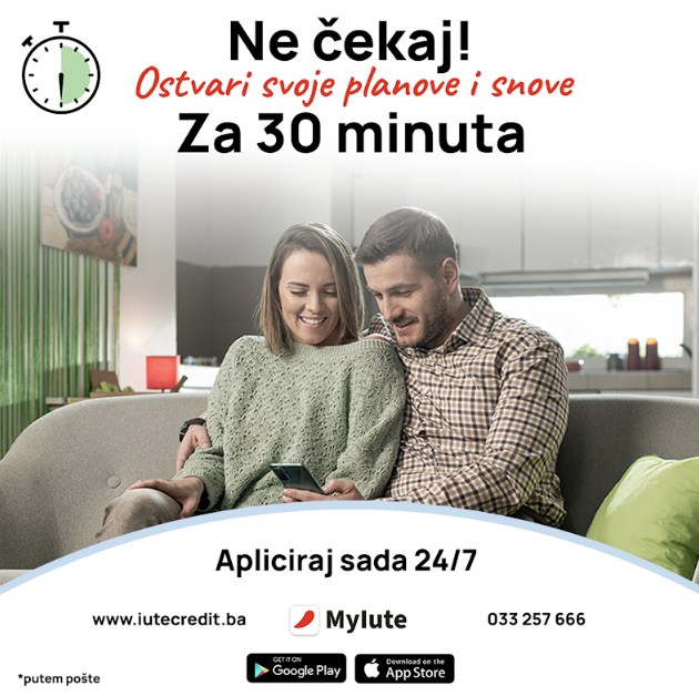 IuteCredit poslovnice su na usluzi klijentima svakim radnim danom do 19:00, a subotom od 09:00 do 17:00. Osim toga, za kredit se jednostavno može aplicirati online, popunjavanjem zahtjeva na webstranici www.iutecredit.ba, što dodatno štedi vrijeme i pojednostavnjuje proces.