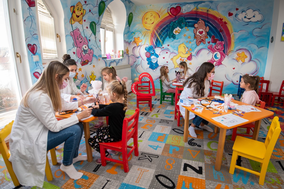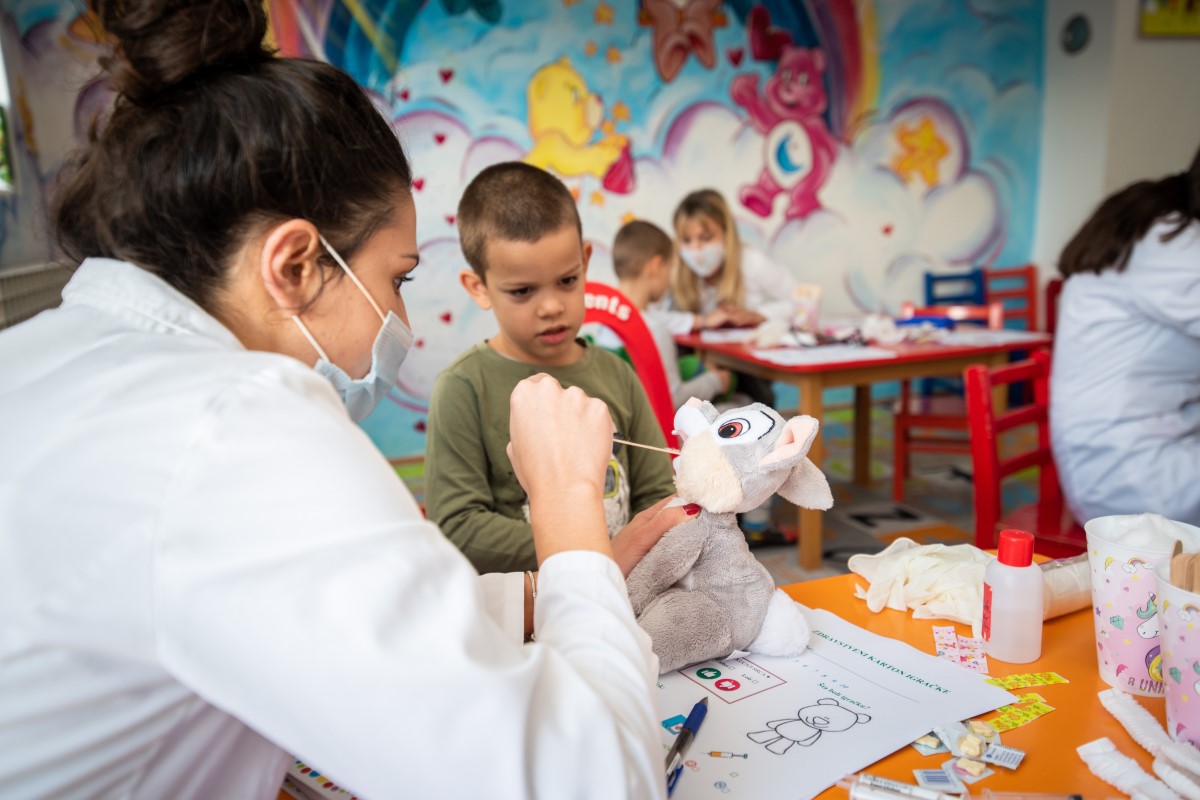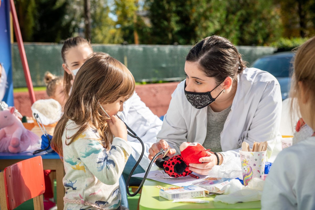 Četvorogodišnja Elena upravo se time bavila – osluškivala je da li njenom plavom kitu srce pravilno radi i zaključila da je potpuno zdrav. Petogodišnji Petar imao je drugačiji problem. Njegovom plišanom psu je procurio nos, pa je od buduće doktorice Ivane tražio savjet.