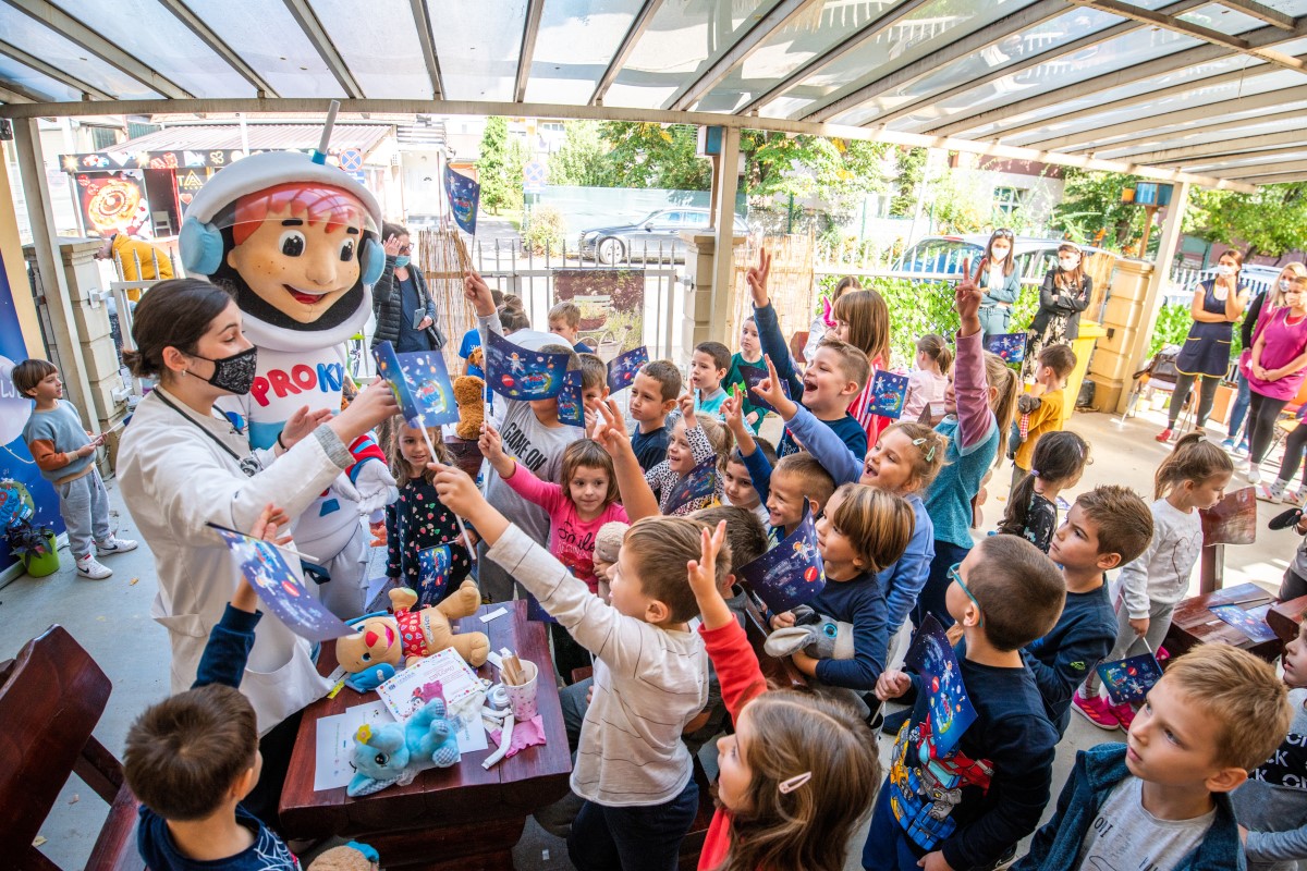 Ako je neko i imao strah, on je nestao kad se među mališanima i bijelim mantilima pojavio svemirac PROKid. I on se požalio na zdravstvene tegobe i sačekao da ga dječiji konzilijum ispregleda sa svih strana. Umjesto tabletice dobio je zagrljaj i sve je bilo u redu.