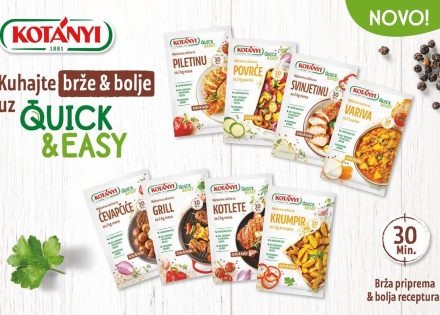 Jednostavno uz mješavine začina Quick & Easy kuhajte brže i bolje, i to sve u samo pola sata. Ovi Kotányi dragulji podići će vaše obroke na viši nivo, a ako ste mislili da to nije moguće uraditi i s krompirom, varate se. Donosimo tri hit recepta koja će za samo trideset minuta učiniti da pred vama imate ukusno, svježe i domaće jelo, a slobodno vrijeme potrošite samo na sebe.