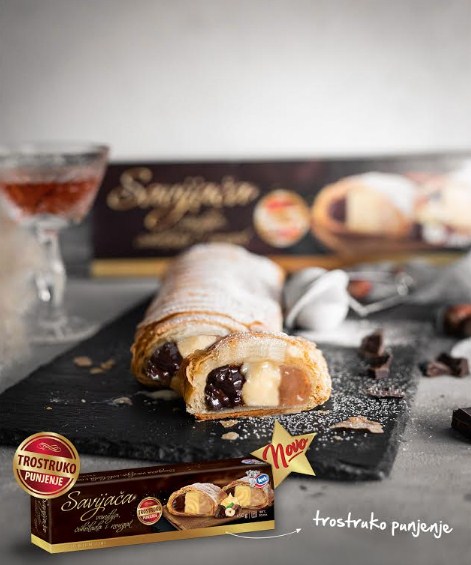 Ljubitelje slatkih delicija posebno će razveseliti prva Savijača s trostrukim punjenjem, koja krije neodoljivu kombinaciju nježne vanilije, mliječne čokolade i nougat kreme. Predstavlja najveću inovaciju na tržištu od lansiranja Okruglica s duplim punjenjem i to zbog modernog i inovativnog pristupa u samom proizvodnom procesu – tehnologije vertikalnog trostrukog punjenja.