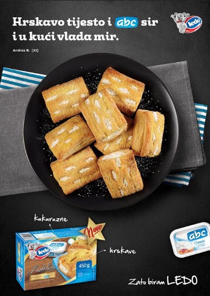 Kao rezultat saradnje dva brenda, nastale su prve hrskave i kukuruzne Ledolette s ABC sirom, ujedno i jedini takav proizvod na tržištu. Obogaćene su finim, kremastim ABC sirom u hrskavom kukuruznom tijestu, s kukuruznim posipom koji im dodatno daje savršenu hrskavost i jedinstven doživljaj pri svakom zalogaju. Zbog jednostavnosti pripreme, idealan su snack baš za svako doba dana – kao fini doručak uz omiljenu kafu, uz veselo druženje s prijateljima i porodicom, za trenutke uživanja samo za sebe nakon hektičnog dana ili nakon večere uz najdraži film.