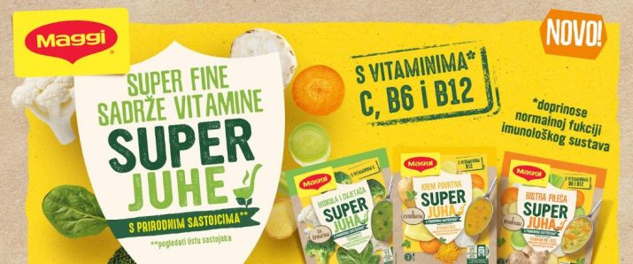 Nestlé je svoj već bogati asortiman kulinarskih proizvoda proširio novim supama brenda MAGGI. Nove MAGGI Super Juhe obogaćene vitaminima C, B6 i B12 koji doprinose normalnoj funkciji imunološkog sistema. Vrijeme kada briga o zdravlju i pravilnoj prehrani zauzimaju visoko mjesto na listi svakodnevnih prioriteta, Nestlé je spremno odgovorio na nove trendove s proizvodima koji sadrže već dobro poznate prirodne sastojke, uz dodatak vitamina.