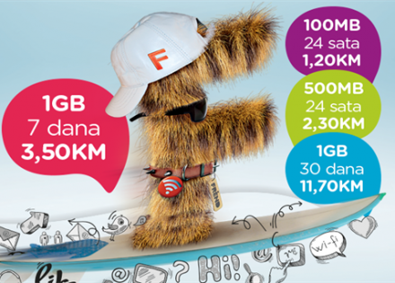 NET 100 MB po cijeni od 1,20 KM, uz koji možeš surfovati 24 sata, NET 500 MB po cijeni od 2,30 KM, uz koji takođe možeš biti onlajn 24 sata, NET 1 GB po cijeni od 3,50 KM, za uživanje u mobilnom internetu 7 dana i NET 1 GB po cijeni od 11,70 KM, uz koji si onlajn čak 30 dana.