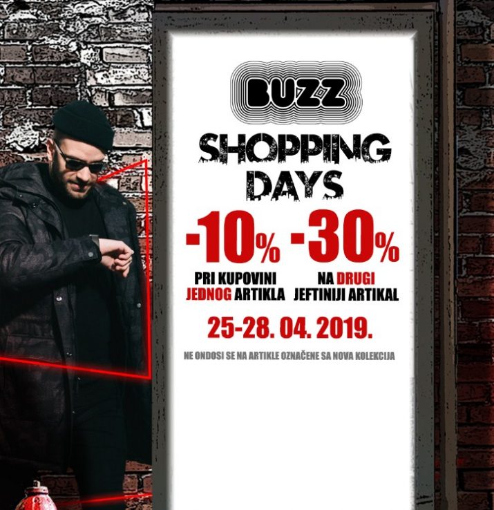 Ovog vikenda očekuje te specijalni popust u BUZZ shopu. Kupovinom jednog artikla ostvaruješ 10% popusta a za kupovinu dva ili više artikala dobijaš 30% na jeftiniji artikal.