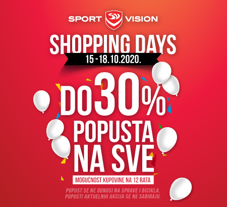 Samo od 15. do 18. oktobra u Sport Vision radnjama možete iskoristiti do 30% popusta na sav asortiman.