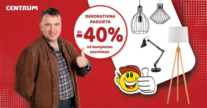 Počelo je finalno sniženje do 40% u svim Centrumovim salonima rasvjete. Očekuje vas 30% popusta na kompletan asortiman lustera, zidnih, stolnih i podnih lampi, kao i 40% popusta na posljednji komad rasvjete.