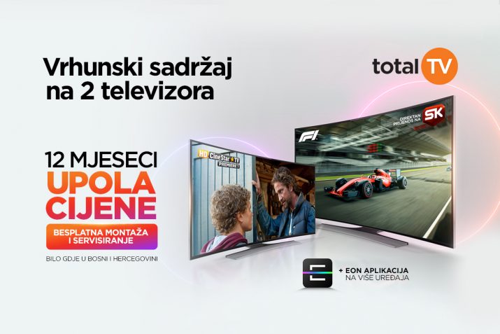 Gledaj 100% Total TV sadržaja bilo gdje u Bosni i Hercegovini i plati samo 50% cijene