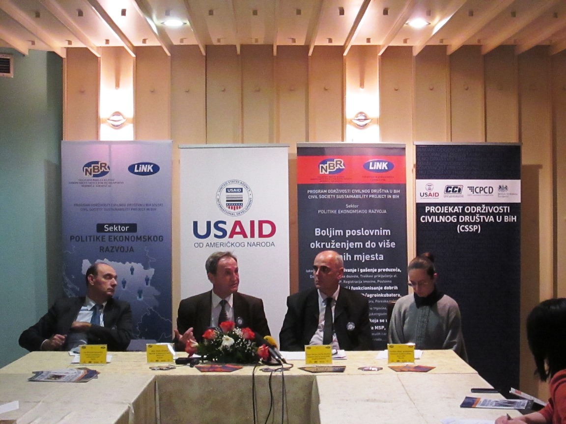 Konferencija za štampu se je održala u sklopu projekta „Boljim poslovnim okruženjem do više radnih mjesta“ kojeg provodi Nezavisni biro za razvoj – (NBR) Gradačac u saradnji sa ključnim partnerom Udruženje za preduzetništvo i posao LiNK Mostar. Partnerske organizacije su koordinatori sektora „Politike ekonomskog razvoja u BiH“ u okviru „Programa održivosti civilnog društva u BiH (CSSP)“, koji finansira Američka agencija za međunarodni razvoj – USAID i Ambasada Velike Britanije u BiH. Program CSSP ima cilj da osnaži i održi kapacitet bh civilnog društva, kako bi ono uticalo na kreiranje i implementaciju javnih politika, koje su od interesa za građane BiH.