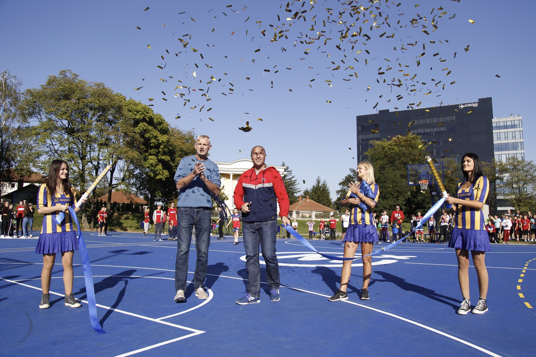 „Tražeći teren koji okuplja najviše mladih u Banjaluci, kako bismo ga rekonstruisali i uredili po profesionalnim standardima, dobili smo informaciju da kriterijume važnosti za zajednicu ispunjava teren u parku Mladen Stojanović, pa smo ga preurediuli nezavisno od toga što je višenamjenski. Kompaniji Mozzart je razvoj i usmjeravanje mladih ka sportu imperativ i najbitnija smjernica, pa smo ovog puta još više zadovoljni jer će na ovom terenu, osim košarkaša, stasavati i rukometaši. Mozzart će nastaviti da izlazi u susret građanima Republike Srpske i Srbije, pa ovo nije posljedni teren obnovljen ove godine. Naprotiv, poslije Banjaluke u planu su nam još tri igrališta u Republici Srpskoj i tridesetak i Srbiji“, najavio je Popović.