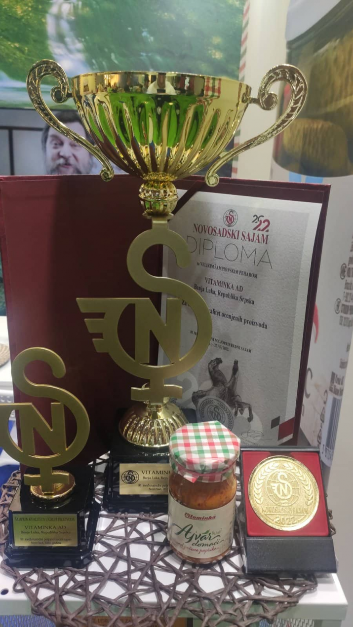Velikih deset zlatnih medalja banjalučka kompanija Vitaminka osvojila je za krastavac delikates, kao i krastavce sa medom i filet papriku, za svima omiljenu marmeladu od šipka, kao i džem od kupina i džem od višnje i jagode. Ajvar i sokovi se takođe ne mogu izostaviti, pa je Vitamnika osvojila veliku zlatnu medalju i za domaći ajvar, kao i za sok od jabuke 100%.