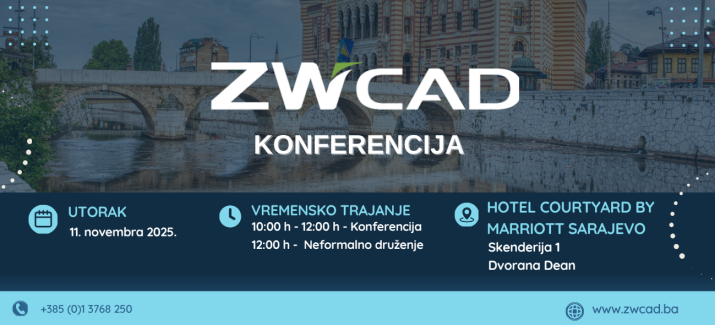 Pozivamo vas da prisustvujete ZWCAD simpoziju u Sarajevu, koji će se održati 11. novembra 2025. u hotelu Courtyard by Marriott s početkom u 10:00 sati.