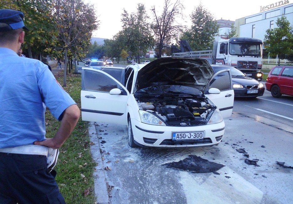 Automobil marke Ford Focus bijele boje zapalio se juče oko 17:30 sati na Bulevaru srpske vojske u neposrednoj blizini salona namještaja “Lesnina”.