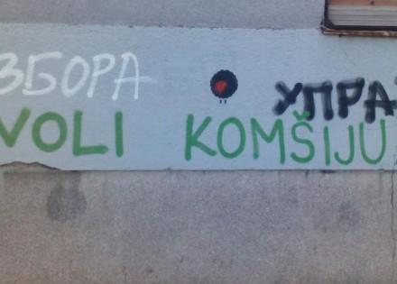 Jedno od njih je sročeno na zidu u Banjaluci i glasi: “Voli komšiju!”