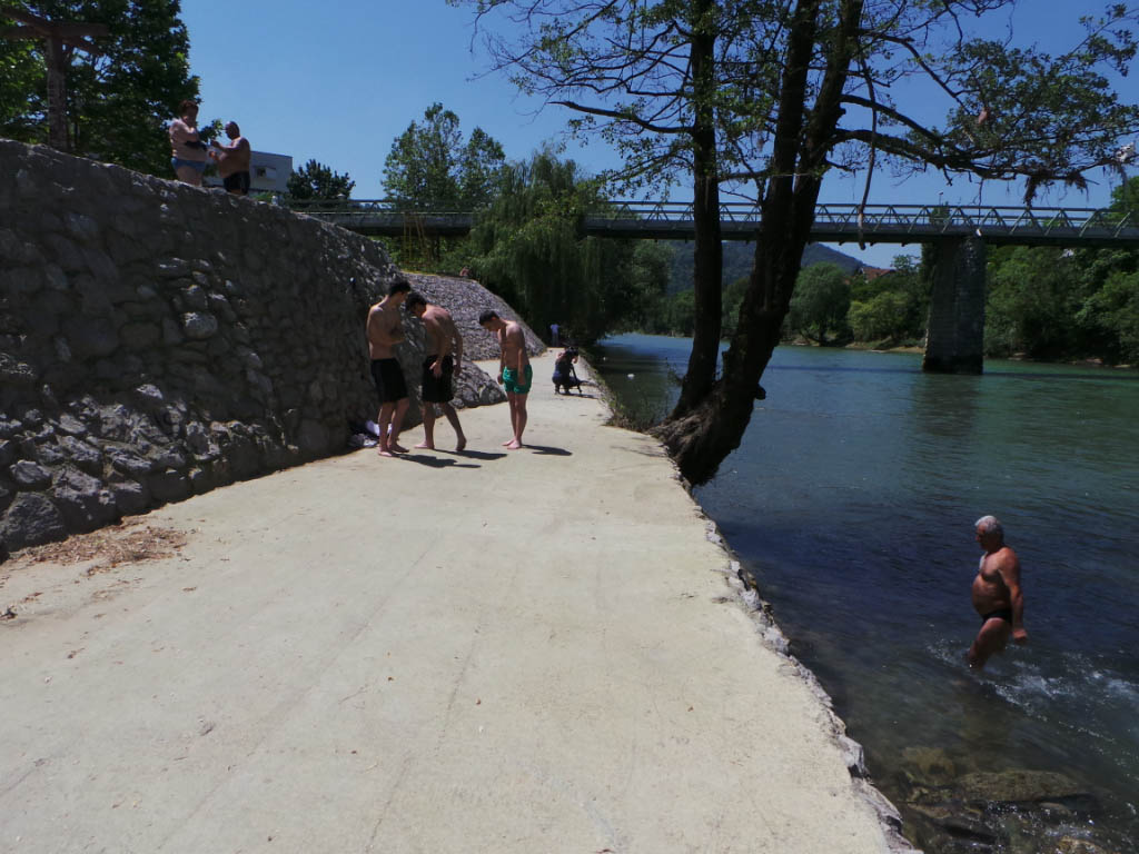 Međutim, mlađi sugrađani ne mare na mutnu vodu i visok vodostaj, te se odlučuju na kupanje.