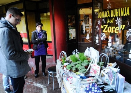 Na tezgi izlagača domaćih proizvoda Zore Pilipović našle su se i ukrasne kugle za badnjak i jelku. Pored nakita, bila je tu i odjeća koju je izradila zajedno sa sestrama.