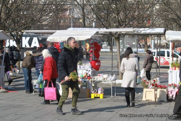Grad je prepun užurbanih muškaraca sa karanfilima i pokojim buketom.