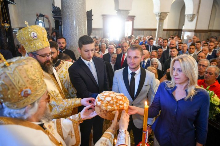 Tokom liturgije obavljen je čin osvećenja slavskog žita i kolača, a nakon toga je uslijedila svečana litija oko hrama.