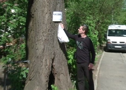 Čim su prema riječima očevidaca komunalni policajci oko podne skinuli kuke dobrote, stanovnici Obilićeva na isto mjesto postavili su četiri eksera i transparent. Kažu, kuke dobrote nikome ne smetaju i zato ih ne bi trebalo uklanjati.