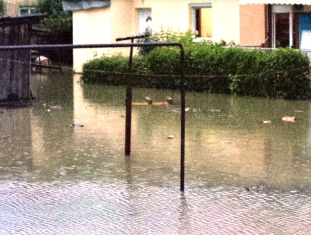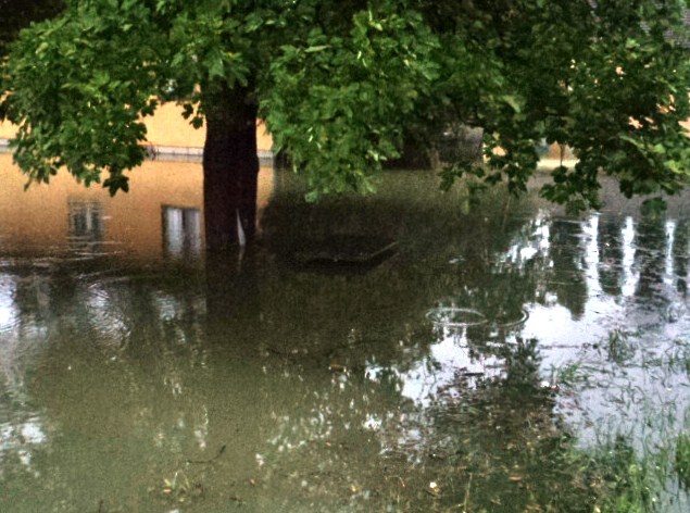 Voda se slijeva sa svih strana, a izbija i iz šahtova plaveći okolne objekte.