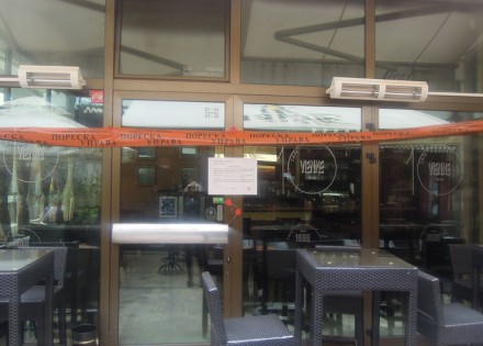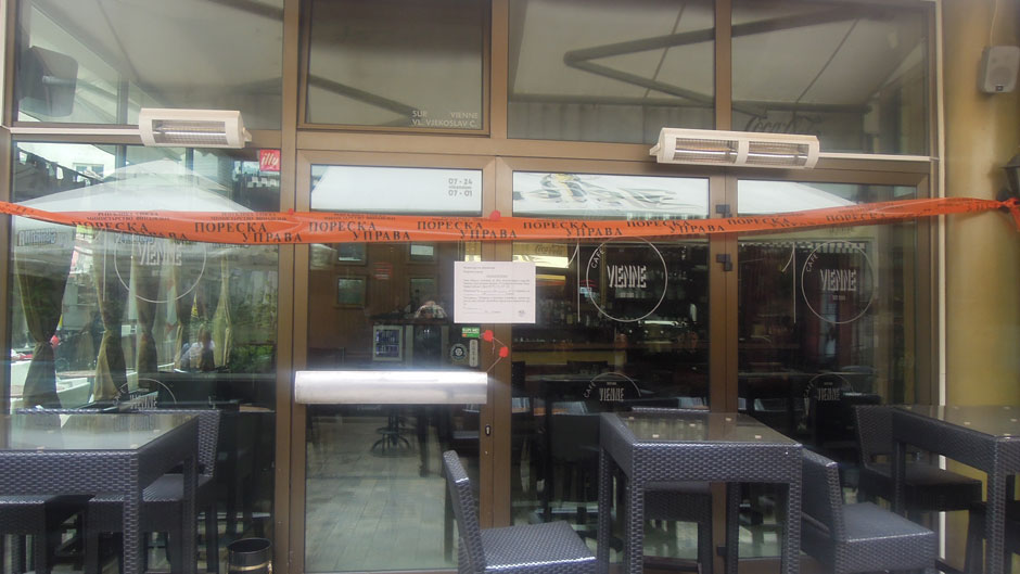 Osim obavještenja Ministarstva finansija Republike Srpske (Poreska uprava) na vratima popularnog kafea nalazi se i crveni pečat.