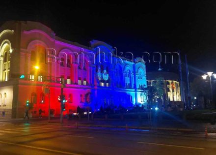 Povodom 34 godine od osnivanja Narodne skupštine Republike Srpske, na Banskom dvoru u Banjaluci upriličena je video projekcija grba Nemanjića i amblema Srpske.