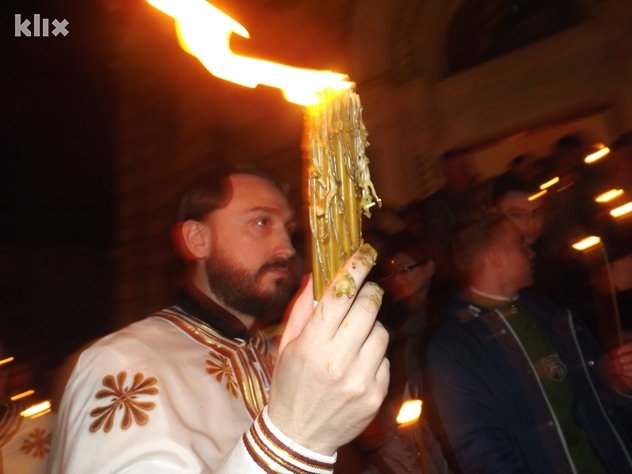 Blagodatni oganj, plamen sa groba Isusa Hrista, u trostrukom je ponoćnom ophodu obišao Saborni hram Hrista Spasitelja u Banjaluci. Oganj je u Banjaluku stigao iz svetog grada Jerusalema, a nakon dolaska predat je episkopu banjalučkom Jefremu, uoči Svete arhijerejske liturgije.