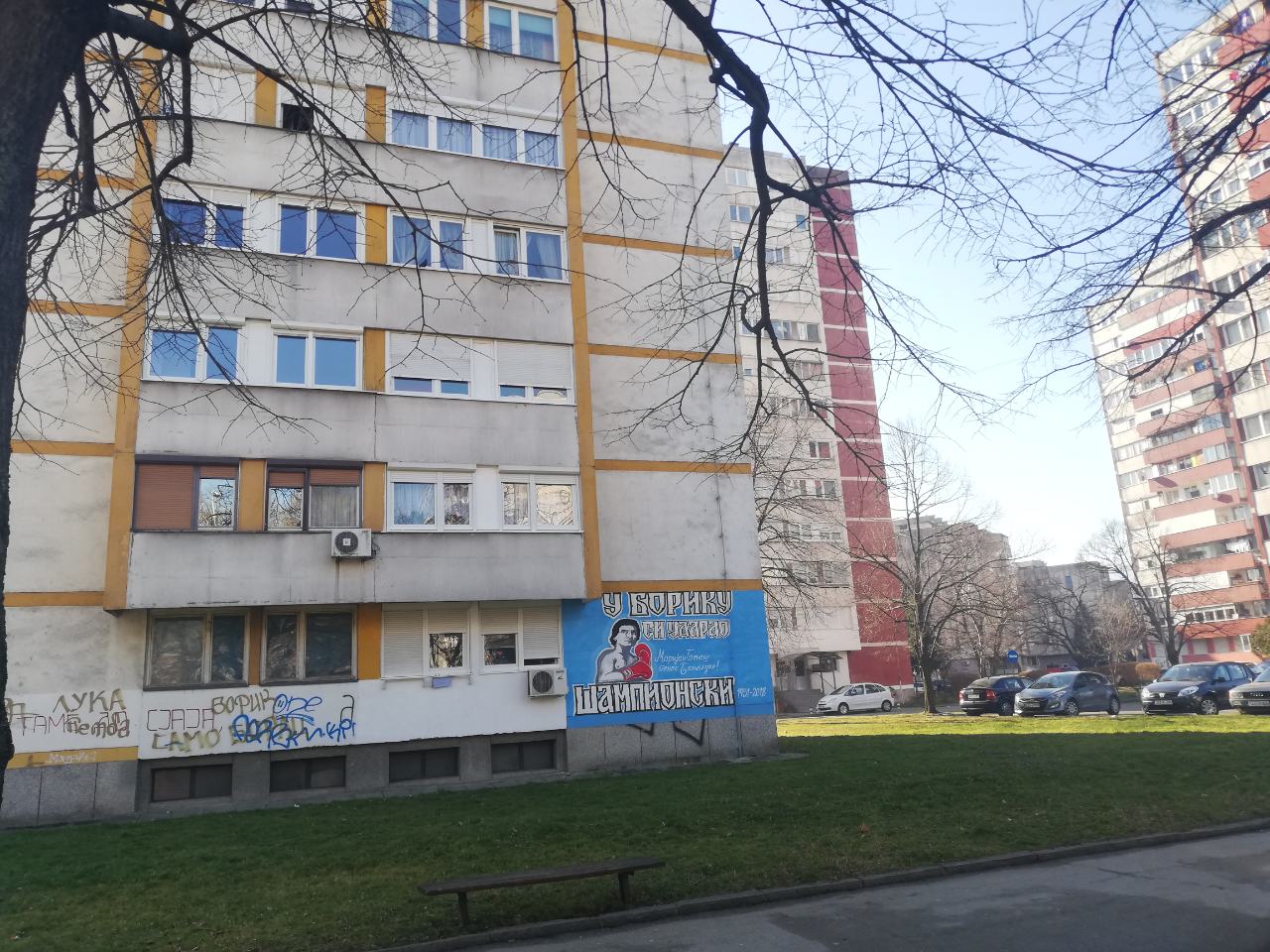 Borik se od banjalučke bokserske legende Marijana Beneša oprostio muralom na jednom od simbola ovog naselja-crvenom neboderu.